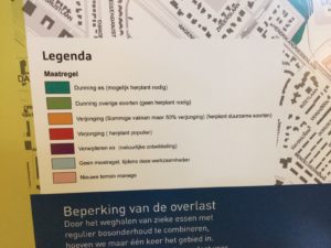 Ook voor het Lage Bergse Bos (LBB) heeft deze ziekte vergaande gevolgen. Op bijgaande kaart kunt u zien waar er allemaal gedund en verjongd gaat worden in het LBB. In de periode juli-september 2018 wordt in het bos aangegeven welke bomen blijven (blauw), welke bomen gesnoeid worden door dode takken te verwijderen (wit) en welke bomen verwijderd worden (rood). De rood aangegeven bomen worden in de periode augustus-oktober 2019 gekapt. De kap vindt zoveel mogelijk handmatig plaats en sommige paden worden hiervoor tijdelijk afgesloten. Informatie hierover komt op borden in het bos en ook digitaal te zien op heerlijkbuiten.nl.